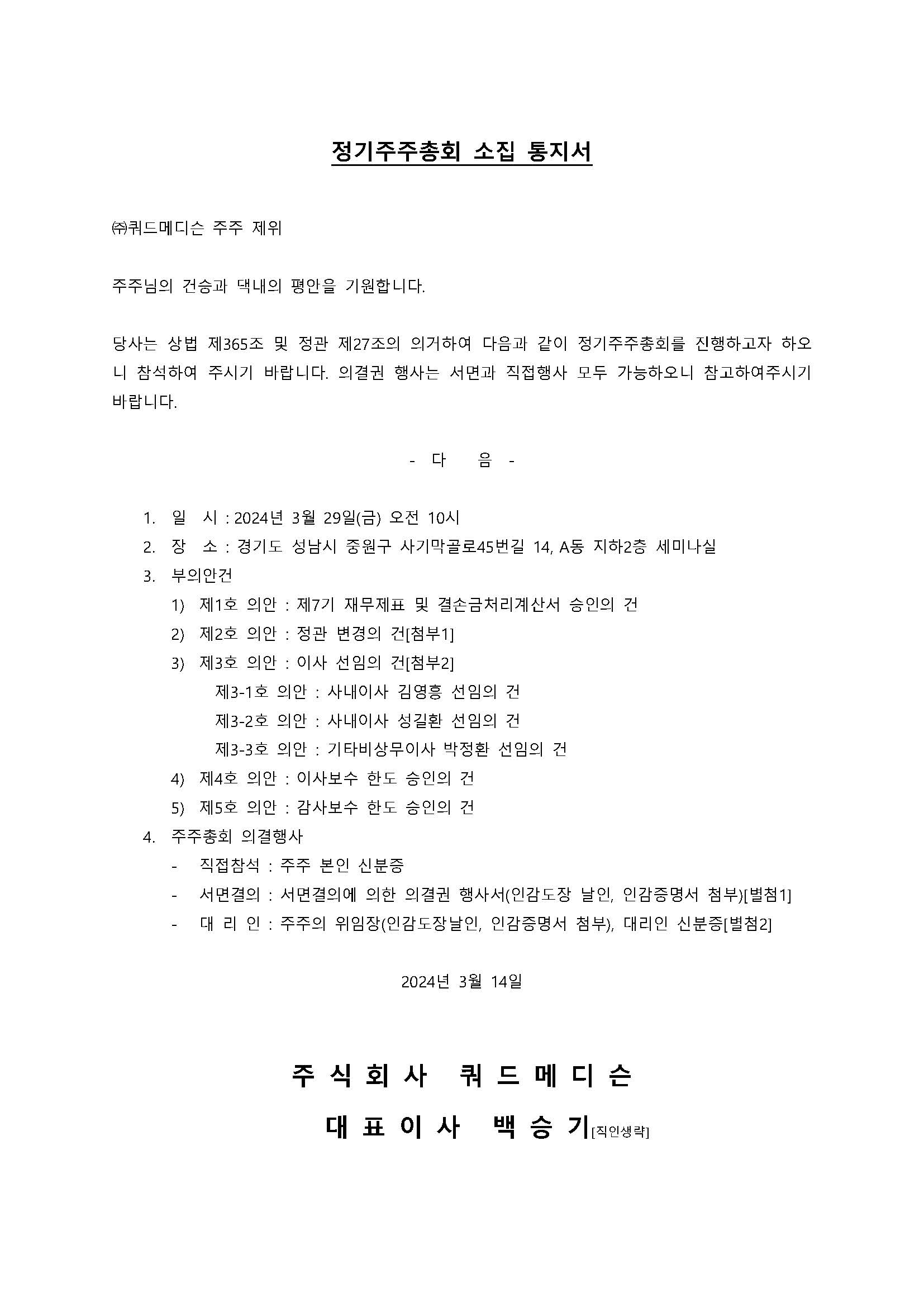 제7기 정기주주총회 소집통지