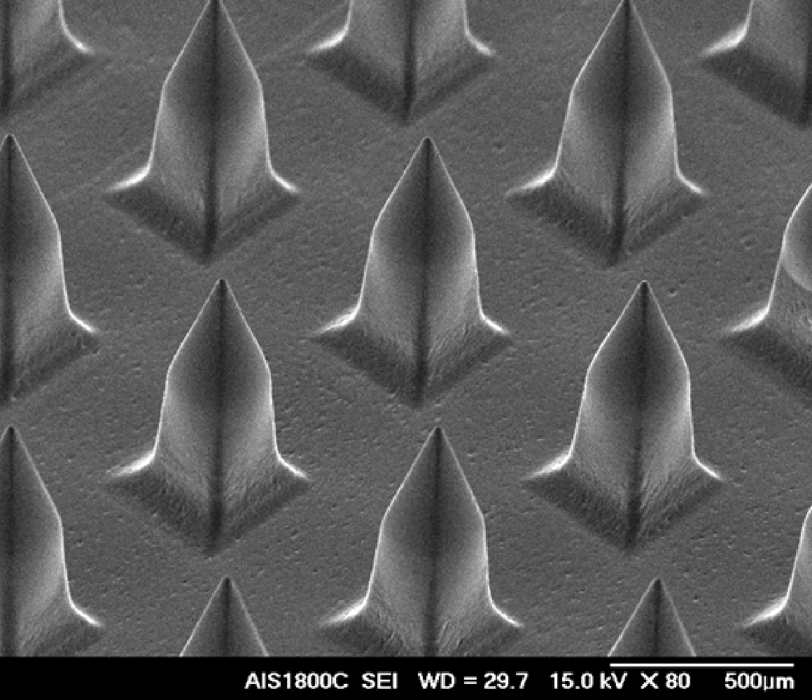 Coated MAP은 API가 마이크로니들 팁 표면에 고형화된 형태로, 백신 등 다양한 의약품에 적용이 가능합니다.